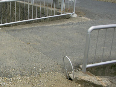 橋の欄干が破損しているので修理。とりあえず最低限の機能を回復させるだけでよいとの事。打合せの結果使える部材は流用・支柱も傾いているが安定はしているのでこのままいく事に。